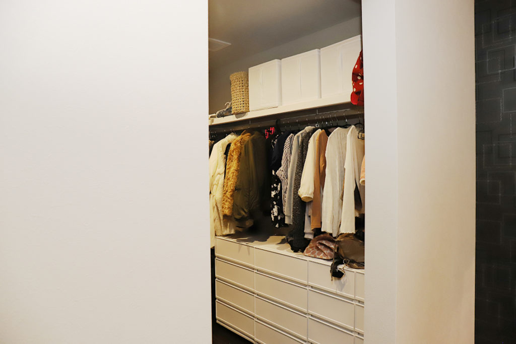 寝室からつづくウォークインクローゼットは、大容量の収納が可能で、一階だけで身支度を済ませられます。