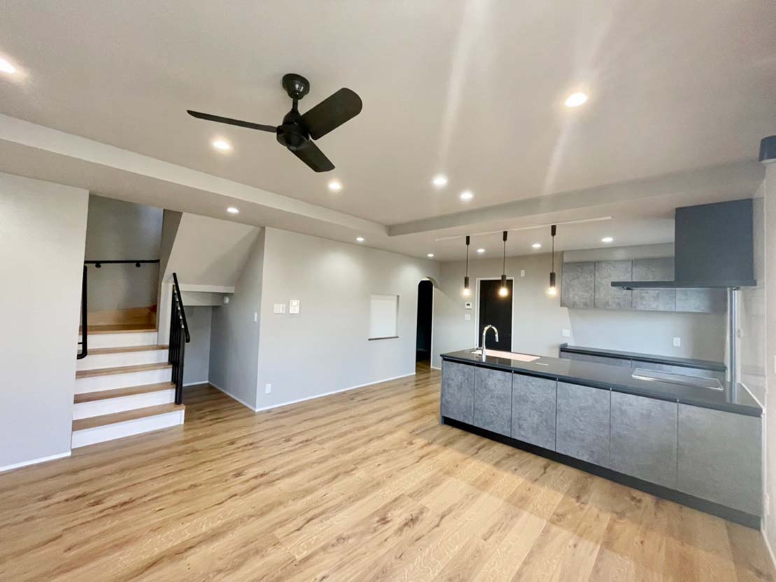 外観はネイビー×ホワイトのツートンに黒のサッシで引き締めています。